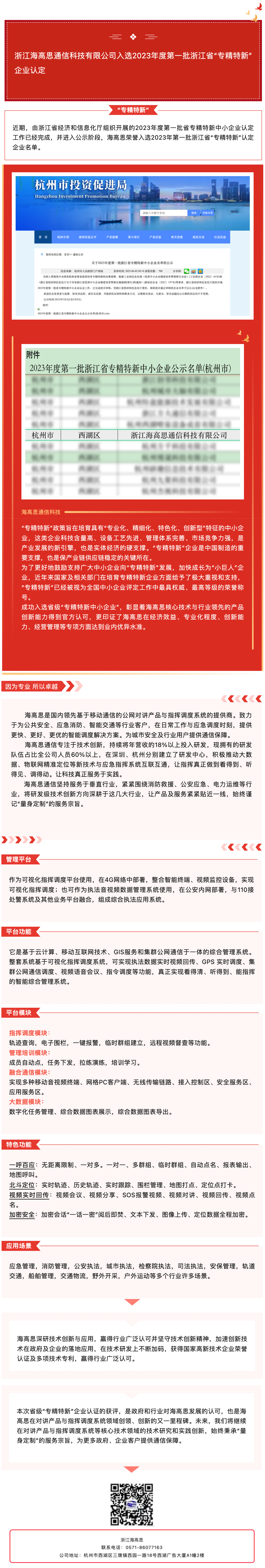 浙江海高思通信科技有限公司入選2023年度第一批浙江省“專精特新”企業(yè)認(rèn)定