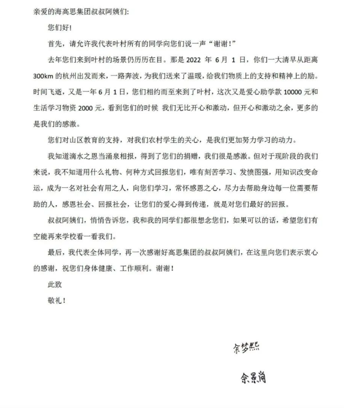 海高思淳安縣中洲鎮(zhèn)葉村公益助學(xué)活動