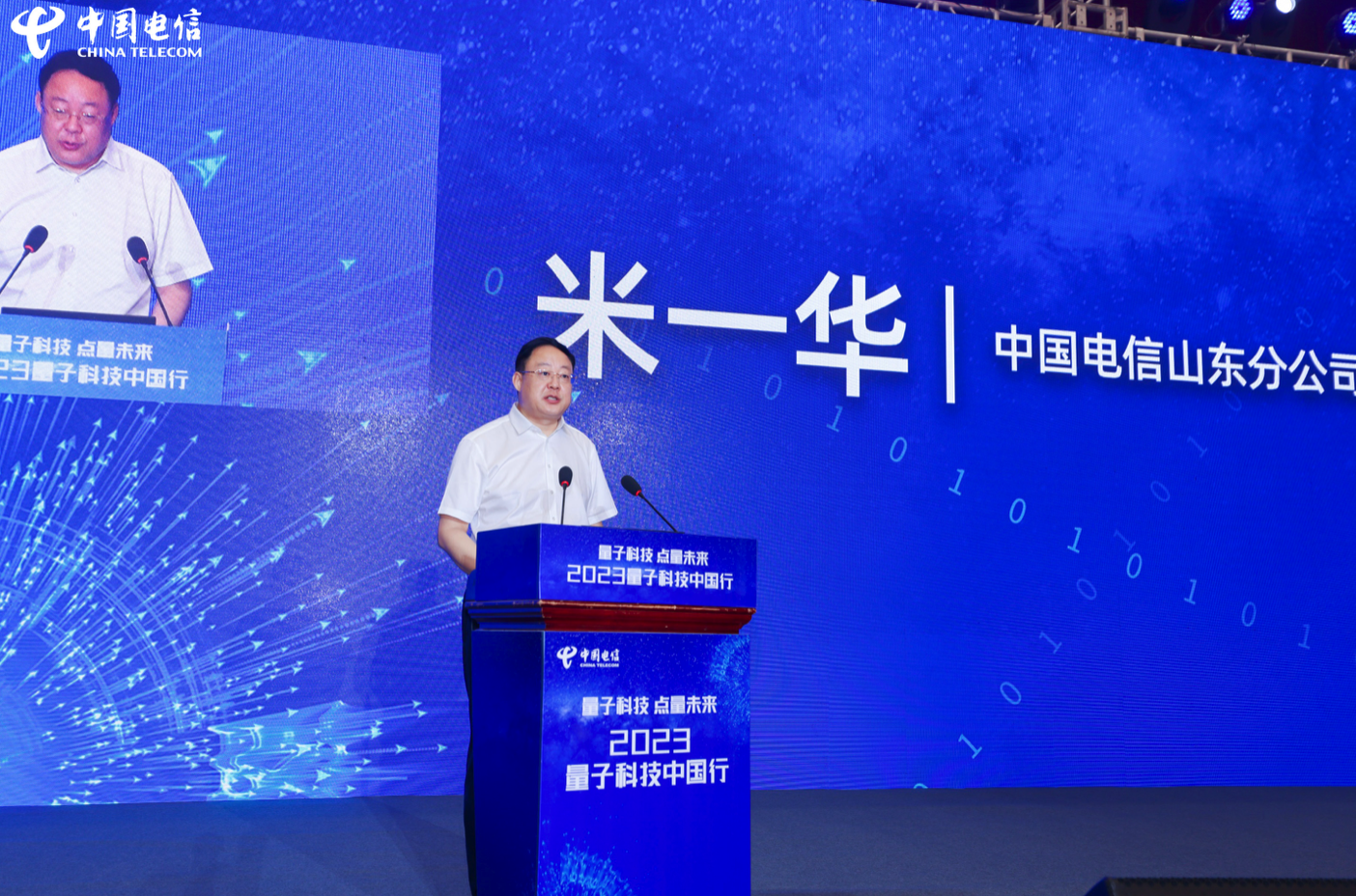 中國電信山東公司黨委委員、副總經(jīng)理米一華在致辭中表示,今年是全面貫徹黨的二十大精神的開局之年,中國電信山東公司將緊緊圍繞黨中央決策部署,牢固樹立科技引領、創(chuàng)新驅(qū)動的發(fā)展意識,加快中國電信山東公司向科技型企業(yè)轉(zhuǎn)型;推動數(shù)字化產(chǎn)業(yè)在山東的深入發(fā)展,為網(wǎng)絡強國建設貢獻力量;秉承開放合作的經(jīng)營理念,推進量子信息產(chǎn)業(yè)在山東的深入發(fā)展,提升服務水平,全力以赴推動企業(yè)高質(zhì)量發(fā)展。